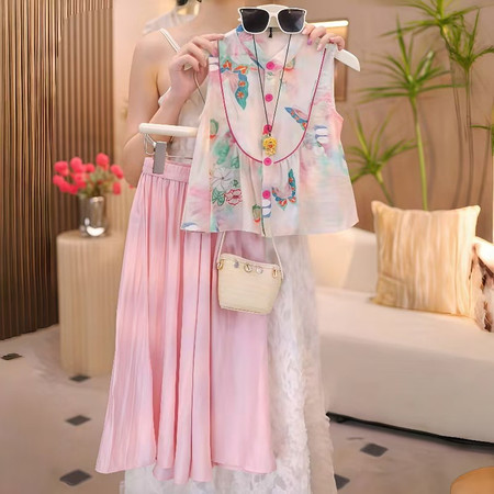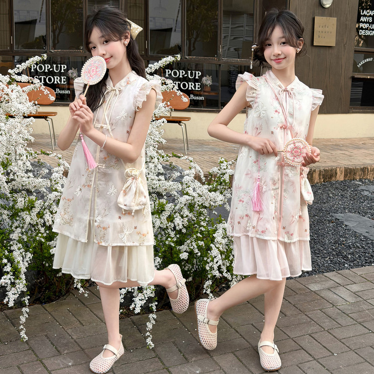 苹果甜甜&6602款新中式彩蝴盘扣裙