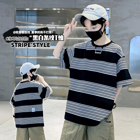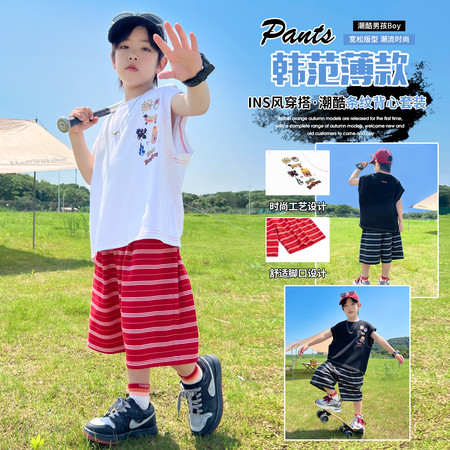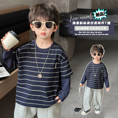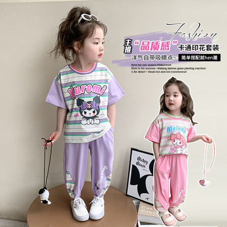 米咔精灵&66035条纹真两件套休闲套装日常运动风