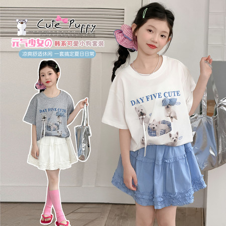 爆版熊&B816-女童宠物狗假两件拉条套装